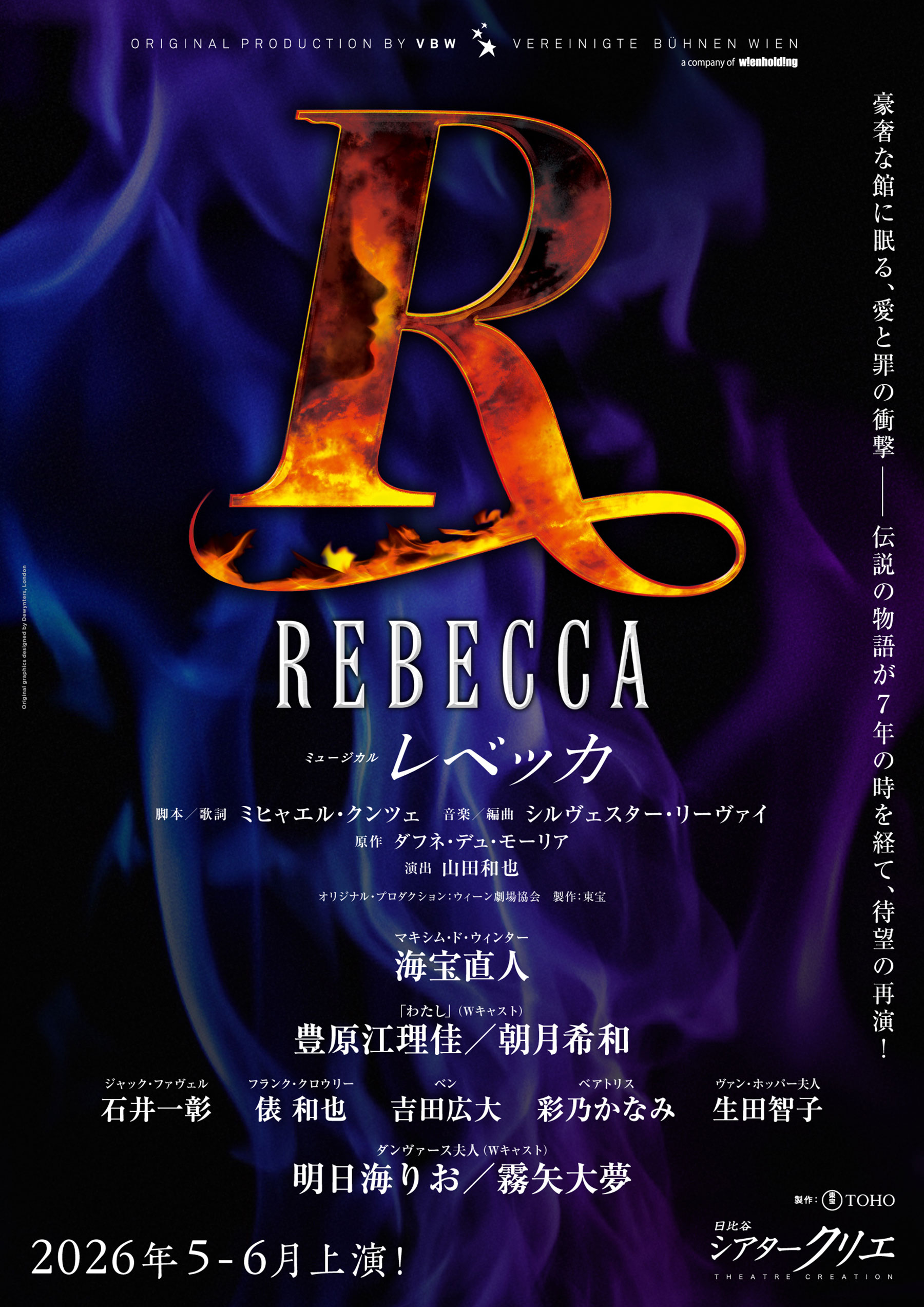 本作品は、イギリスの作家ダフネ・デュ・モーリアのゴシックロマンス小説を原作とした、サスペンスとロマンスが絡み合う重厚な作品であり、2008年4月に、シアタークリエ・オープニングシリーズのミュージカル公演第1弾として華々しく上演。